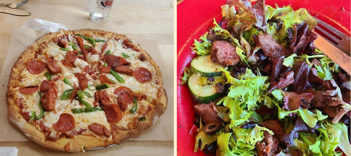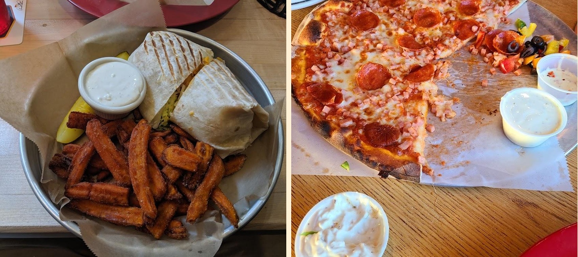 Ruby's Wood Grill serves a variety of dishes. Enjoy starters like Buffalo Chicken Dip, pizzas like The Big A, burgers including Ole Fashion, and seafood selections such as Atlantic Salmon. Lots to choose from!